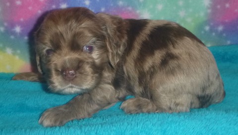 Puppy #2-male Solid chocolate merle |
