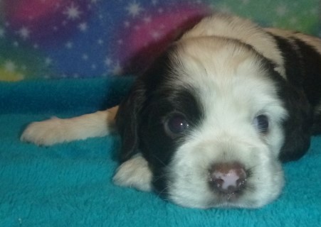 Puppy #4-male Parti with chocolate and tan points |