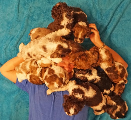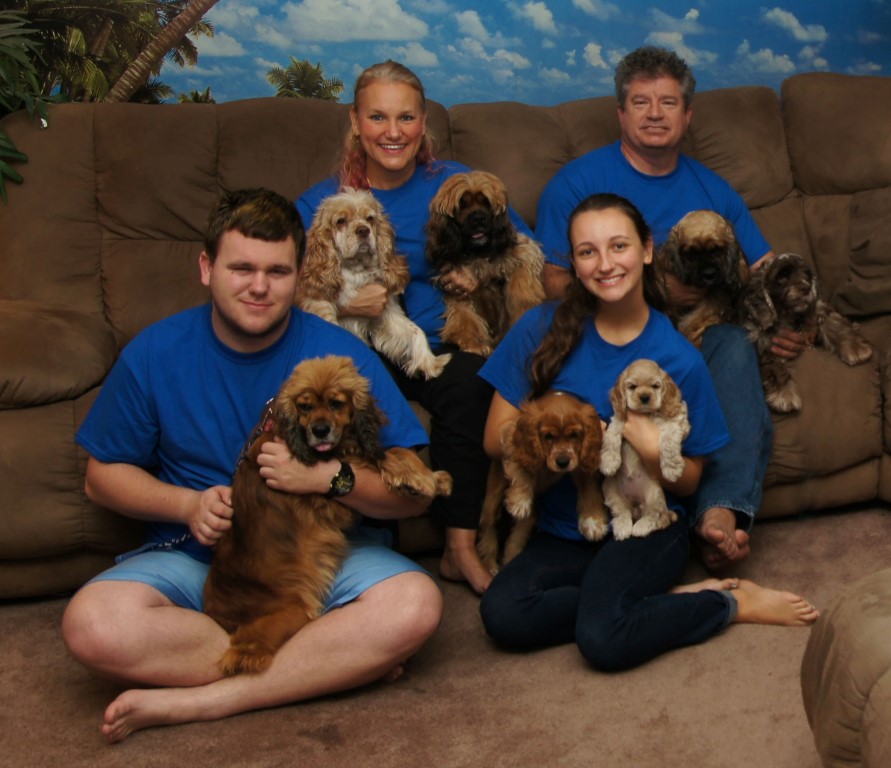 We have been breeding American cocker spaniels since 2004 and it is truely a labor of love. All of our puppies have their tails docked and dew claws removed. (This is the claw on inside of front feet that can catch on your clothes when they jump up.) Both procedure are performed in our vets office at 2 days of age when the puppies nerves are not completely formed in these areas. Our pups are then dewormed at 2, 4 and 6 weeks of age. At 8 weeks of age the pups are brought again to the vet to have a health check up, tested for worms, and given their first set of shots. A state of Florida heath certificate is given with each puppy.