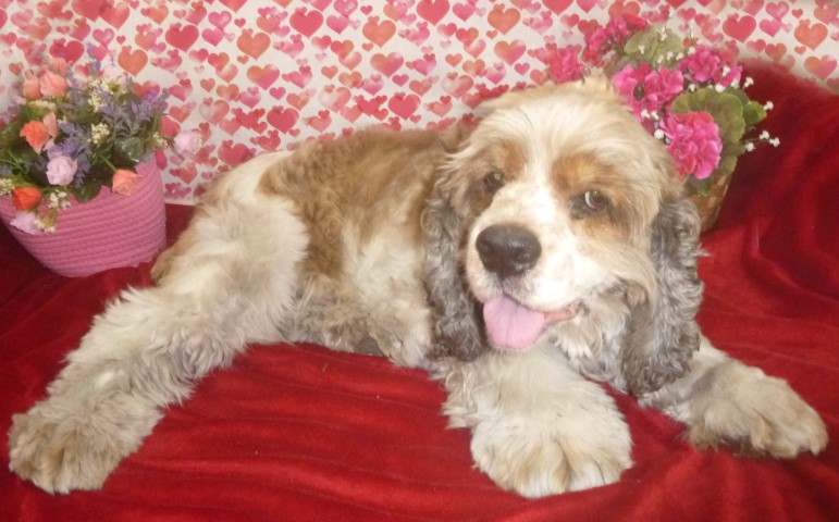 Bandit joined us in March 2016, his birthday is February 4, 2016. His breeder is Sherri from Elizabethton, TN who has been breeding his line for over 15 years. He is a sable parti cocker. He is such a kisser and super sweet! He will be a future stud for us in 2017.