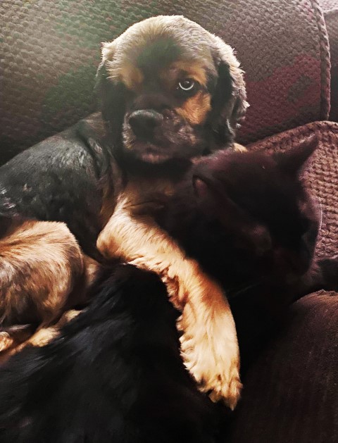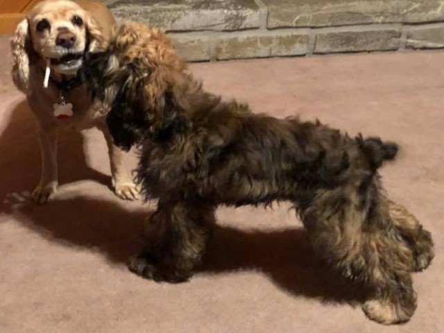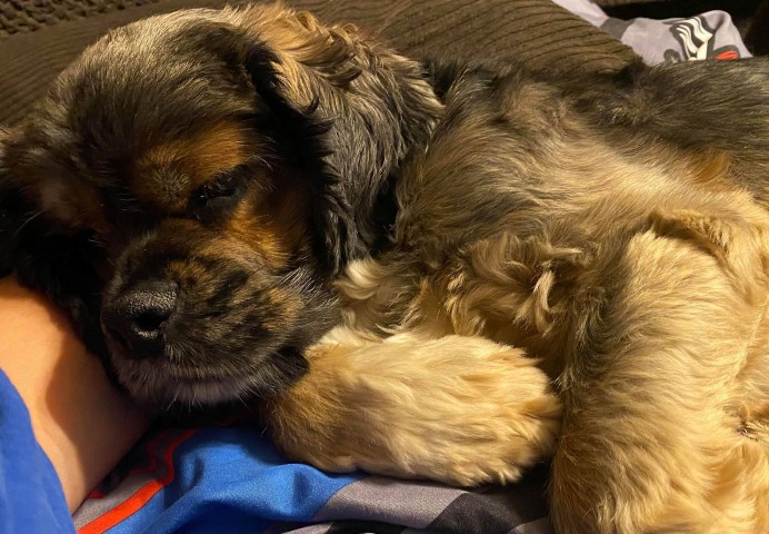 My name is Blue – can you guess why? Yup, I have one Blue eye just like my mom. I was born here at Orlandocockers on 1/28/18 – my parents are Blue Skye and Charlie2. I’m a very unique black tipped sable merle cocker!