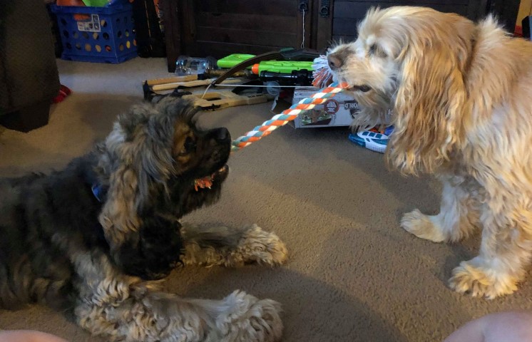 Playing tug with Prissy – 18 months old
