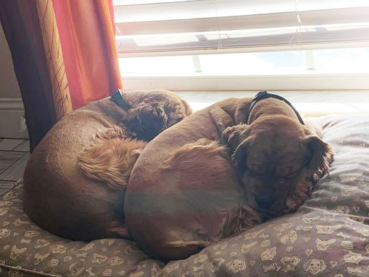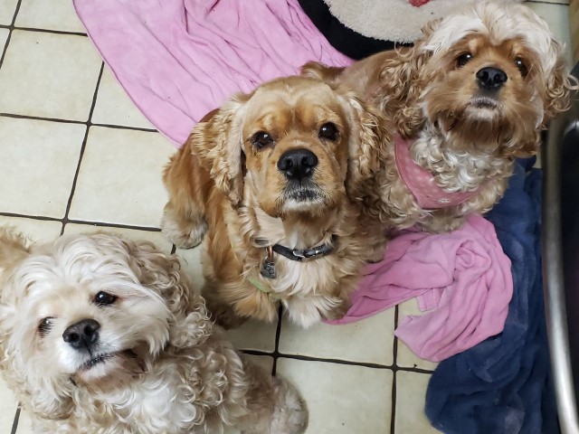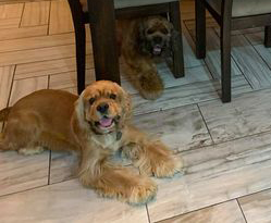 Pictured above is my Mom, Daisy. She is a red cocker from Fossil Ridge Kennel in Texas. My dad is Taz from Pennylane Cockers in Wisconsin. I had 4 littermates.