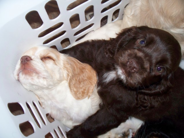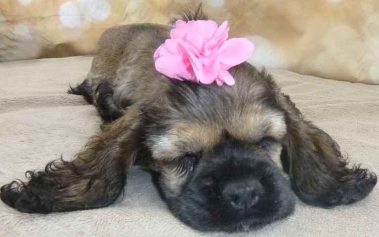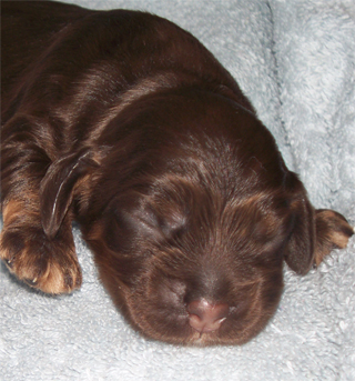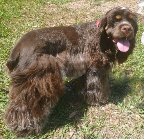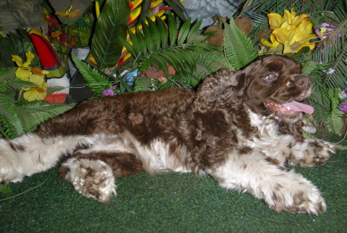 Liver gene – when a cocker has this coloring, it replaces black for these areas – nose and pads of feet. Inside the mouth there is often dark pink instead of black. In Liver gene pups, they often have hazel or green eyes instead of the typical brown!