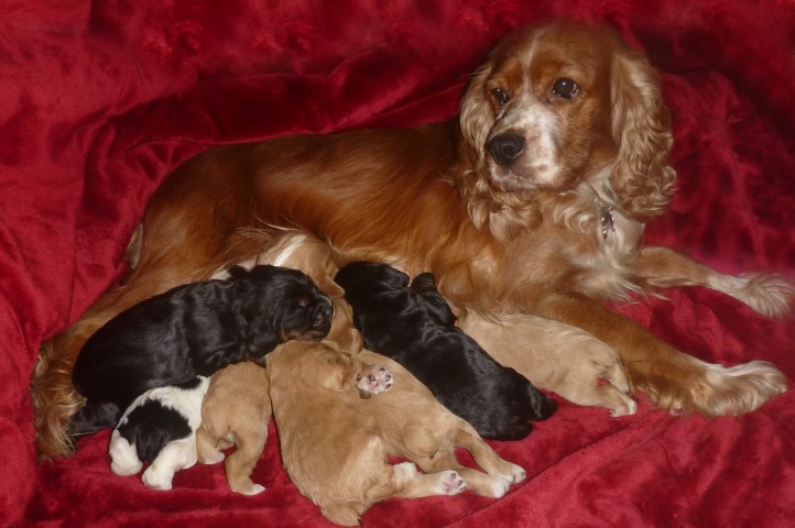 Daisy turns 6.5 yrs old – her last litter. Fiona is one of her last pups in these pictures!