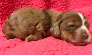 We have had puppies in many colors – red, buff, chocolate, sable, parti, black, silver, and merle and roan! If you are interested in a puppy, click the little green floating envelope icon in the lower right of the page.