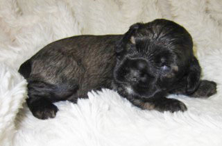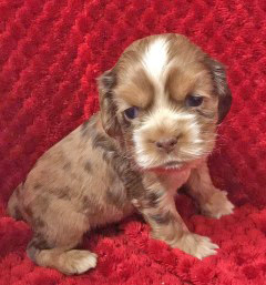 Mocha – chocolate sable merle pup (chocolate color with sable gene and then merle diluting color randomly):
