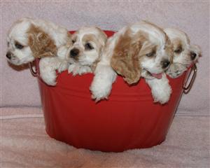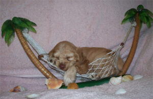 Cockers respond easily to voice commands and house train easily with the use of a crate. Check out our link to helpful hints to get more information on the correct way to crate train your new puppy. If done correctly, the crate will become their home sweet home.