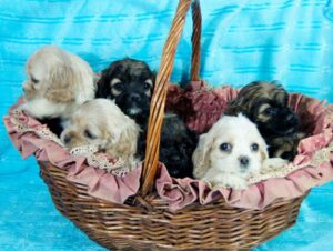 Cockers are one of the most beautiful breeds of dogs. Their long coats can be absolutely spectacular looking, but do require care. All breeds of puppies are cute, but Cockers remain cute all of their lives. Cockers love people and are very devoted pets. Almost all Cockers love to be with people, and are usually happiest if they are laying in your lap giving you’re their cute cocker eyes. All you have to do is watch that tail wag, and you can tell when a Cocker is happy… That is part of the reason why cockers tails are docked, they are constantly wagging them!
