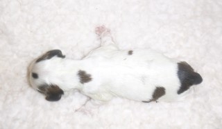 Marley – sable parti roan pup – (black sable parti pup with roan gene):