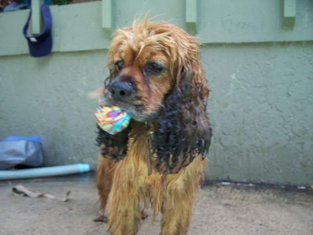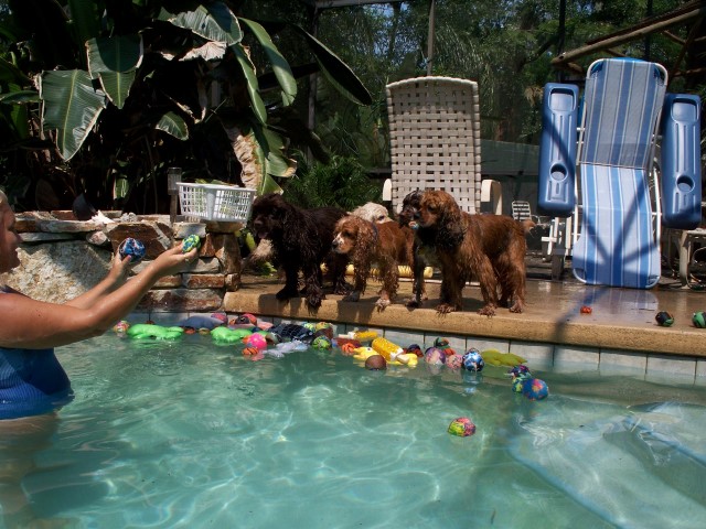 Jasmine was known for catching water bombs and putting them all in a flower pot! Shown in the pool with Bailey, Ace and LeiLani.