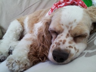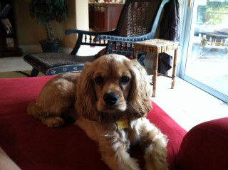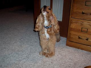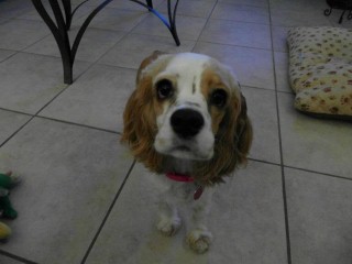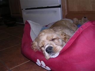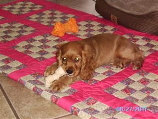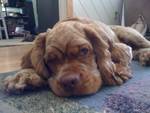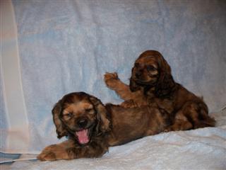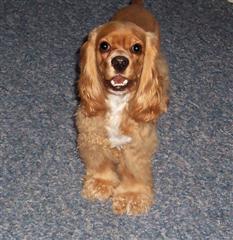 Lola – red cocker – Daisy and Bandit are her parents – born 1-22-10