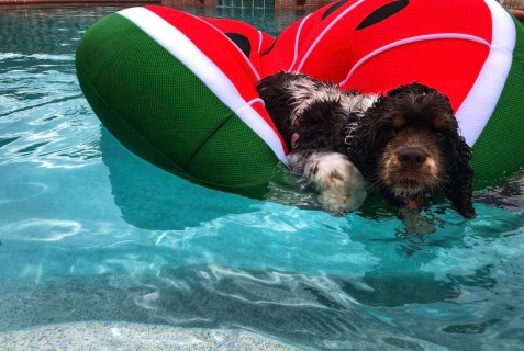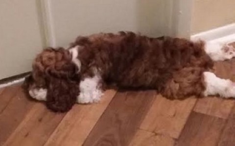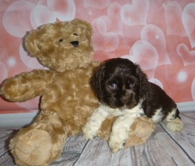 Rigby – Chocolate sable and white cocker – Calypso and Bandit – 12-8-18