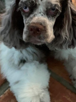 Blue – parti blue merle cocker – parents are Blue and Chip born 1-20-21