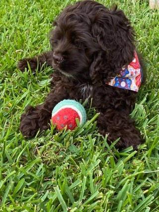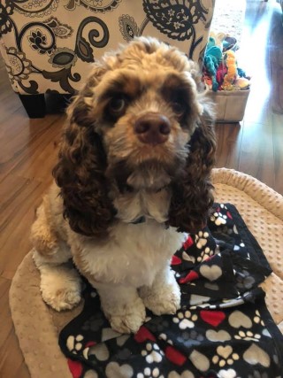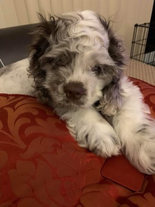 Bella – beautiful chocolate merle cocker – Blue is Mom, Boti is Dad born 11-30-19