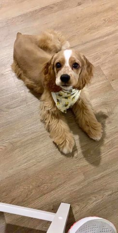 I’m Finn, a buff cocker. My parents are Lily and Bolt and my birthday is 9/10/18
