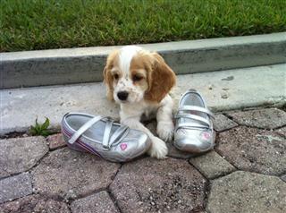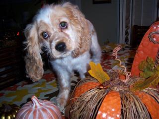 Corkey – Silver colored cocker at 8 wks and a year old – Bella is the Mom, Coco is the Dad, born 10/11/09