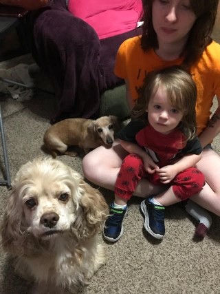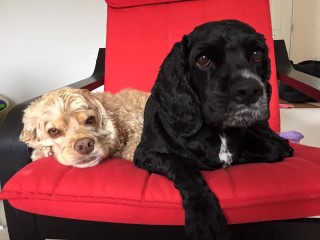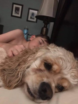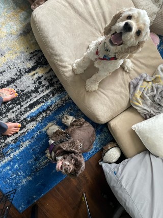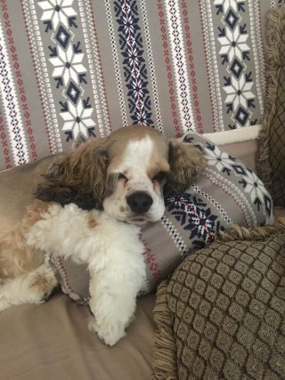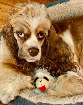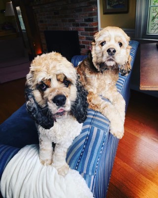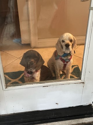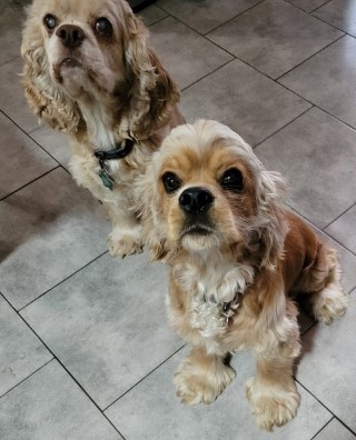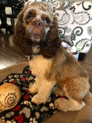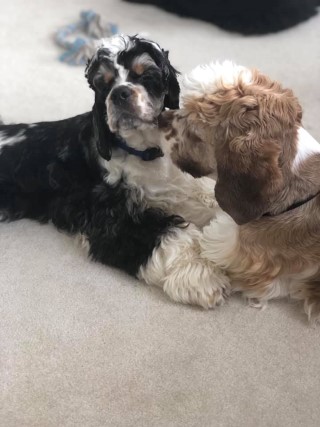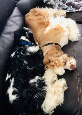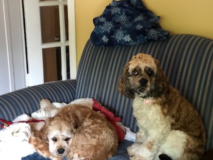 Lex – a buff cocker. Look just like my Mom! Cheri and Bolt – 3-22-20