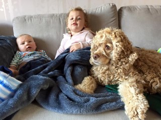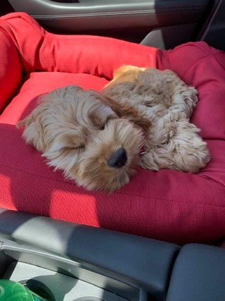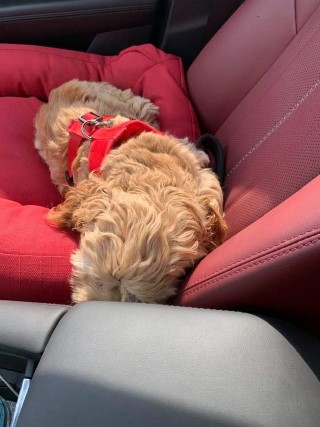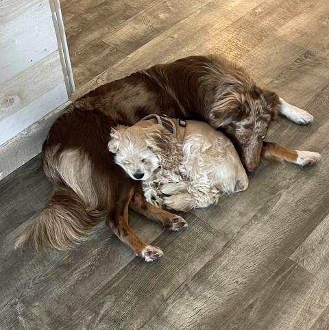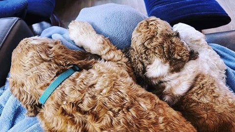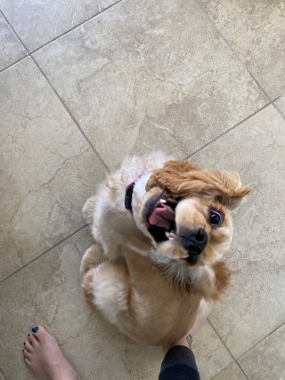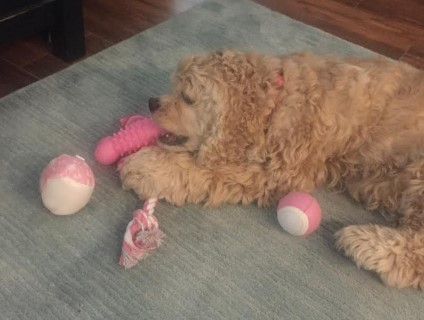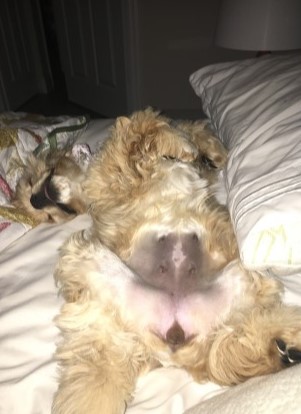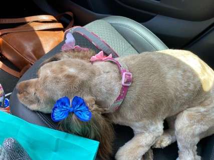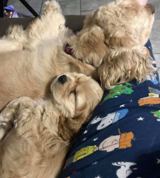 Lottie (buff cocker) joined Ari – Lily and Bolt are the parents, born 7-28-20