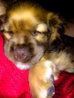 Bella, a chocolate sable pup. Roxy is the Mom, Taz the Dad. Born 11/20/13