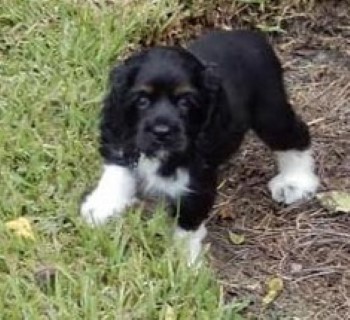 Dakota – black cocker with white markings – Jewelz and Blue are the parents – born 4-5-19
