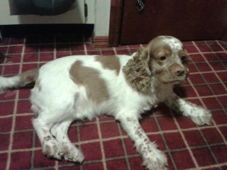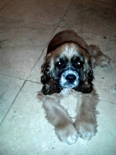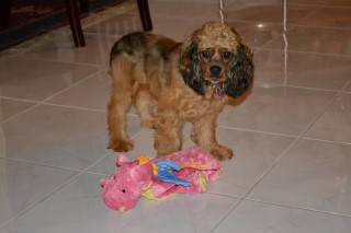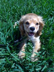 Jake – Buff -Clear sable – colored cocker – Jasmine is the Mom, Coco is the Dad, born 12/23/09