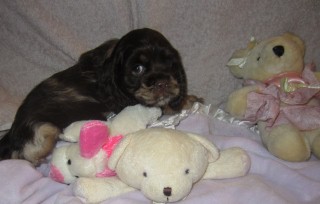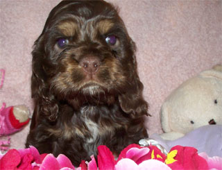 Molly, chocolate sable cocker. Roxy is the Mom, Taz the Dad. Born 1/9/15