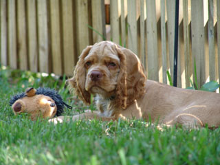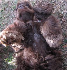 Yogi at 1 year old – silver cocker with the liver gene – Bella is the mom, Coco the Dad, born 10/11/09