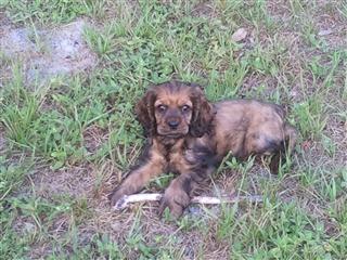 Mickey – red and black sable cocker-Willow is the Mom, Taz is the Dad, born 6/8/15