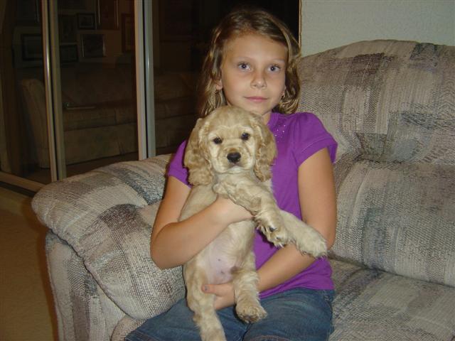 Lola – Buff colored cocker – Tiffany is the Mom, Coco is the Dad born 10/7/09- Pictured with Lola is our retired Lexi – she sure does love HER new puppy!! Last picture Lexi is 8, Lola is 3.