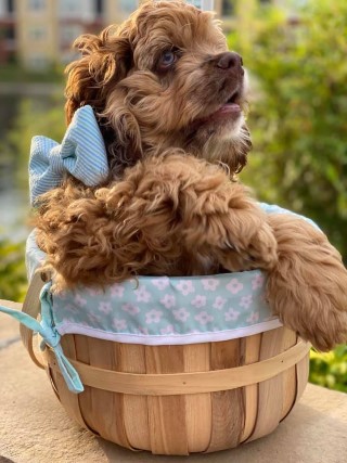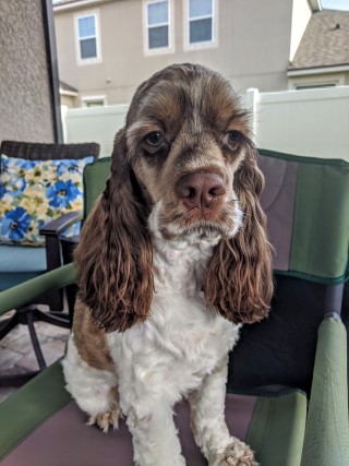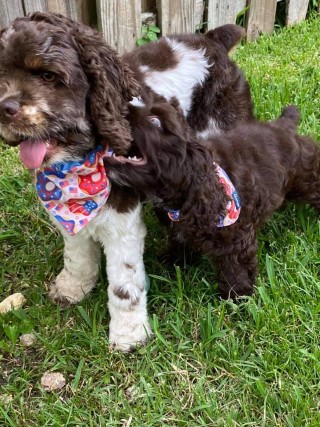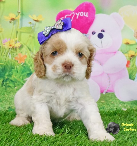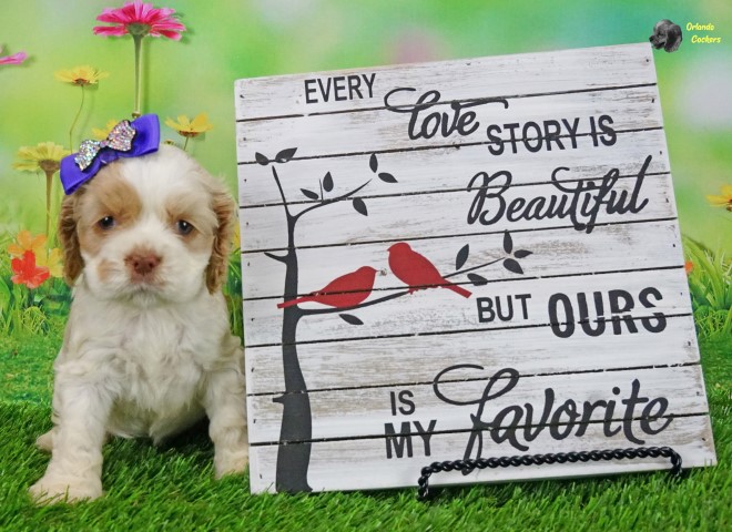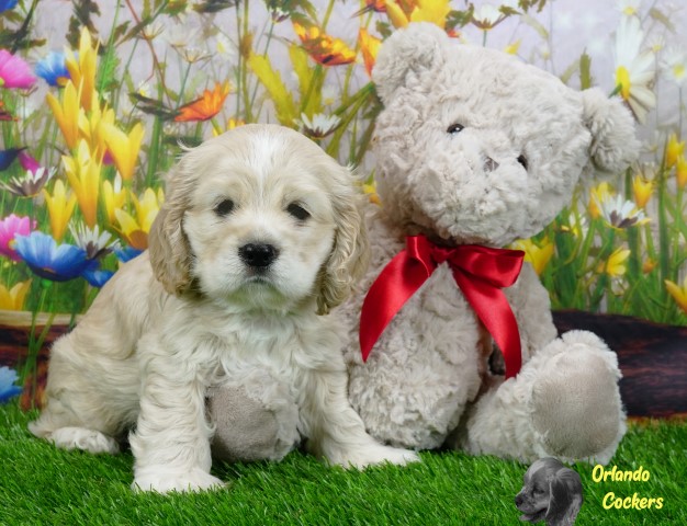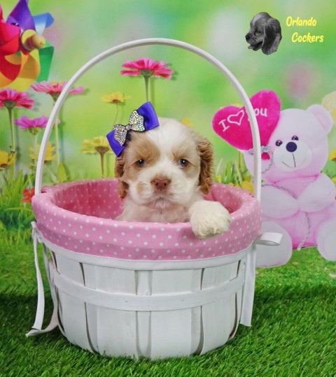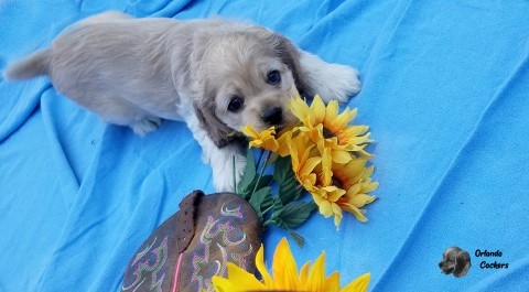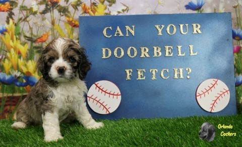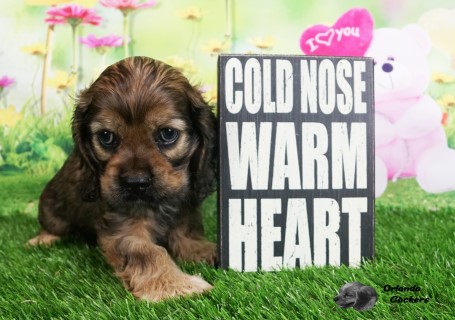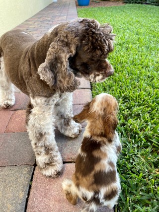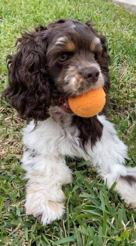 Hi there, I’m Weslen – my bud is Simba! I was born 3/13/21 at Orlandocockers – parents are Patty and Blue. I’m a sable parti cocker and I also have merle markings! I’ll be a future parent with Orlandocockers someday!