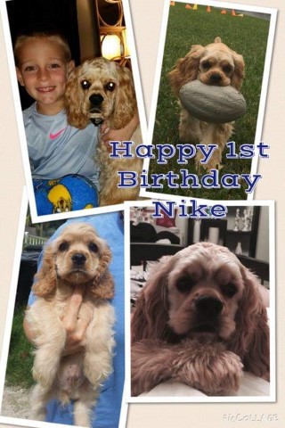 Nike – buff cocker – parents are Roxy and Taz – born 6/24/14 – shown at 1 and 5 years old