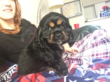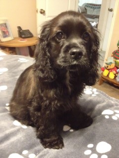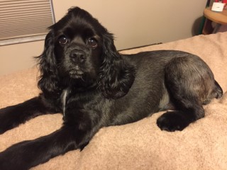 Jazzmine, black cocker. Willow is the Mom, Taz the Dad. Born 8/22/13