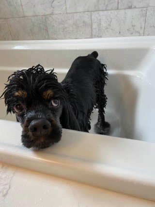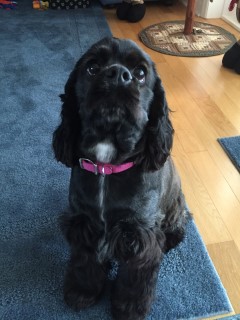 Daisy – black cocker. Roxy is the mom, Taz the dad. Born 6/24/14