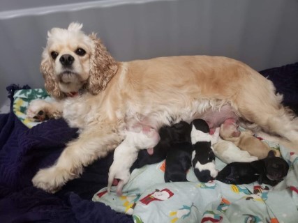 Summer- light buff cocker- Lily is the mom, Bolt is the Dad, born 9/10/18