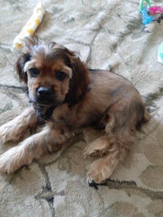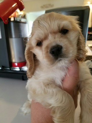 Auggie – Buff cocker – Roxy is the Mom, Taz is the Dad. Born 8/15/15