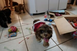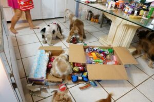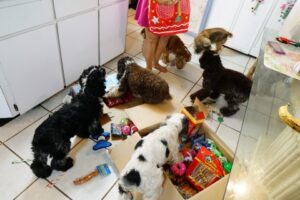 Christmas 2016 – each and every doggie is spoiled (that box is full of their new toys)!