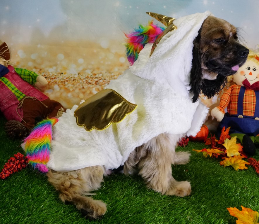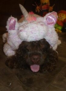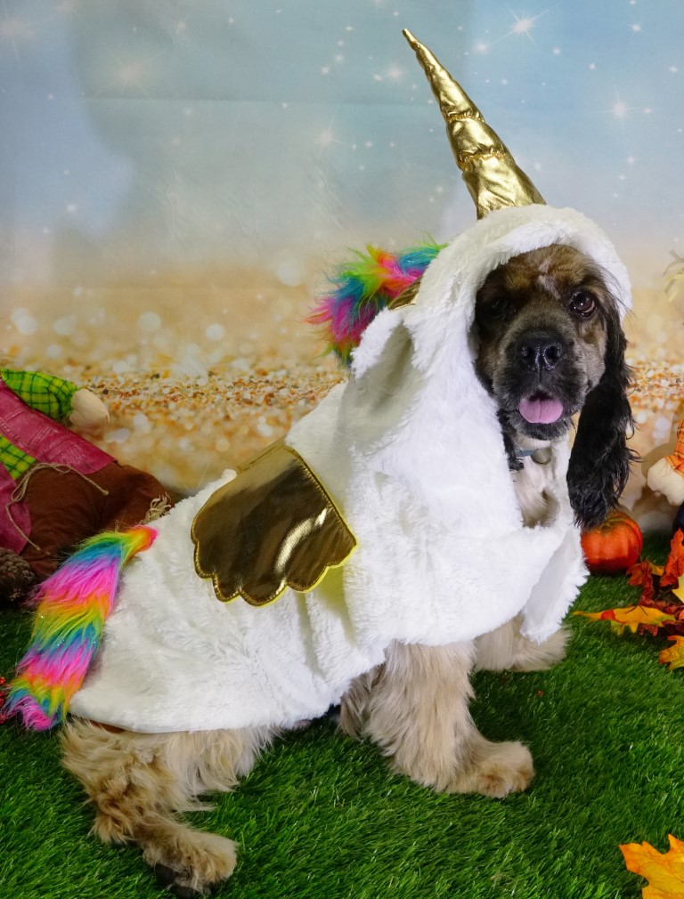 Java, our fluffiest cockers, in the fluffiest costume – a unicorn!