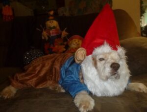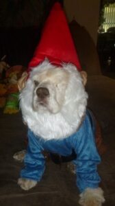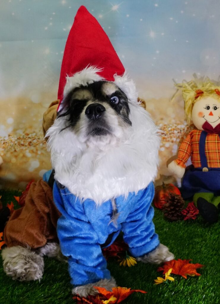 Last, Miss Willow easily pulling off the grumpy garden gnome!