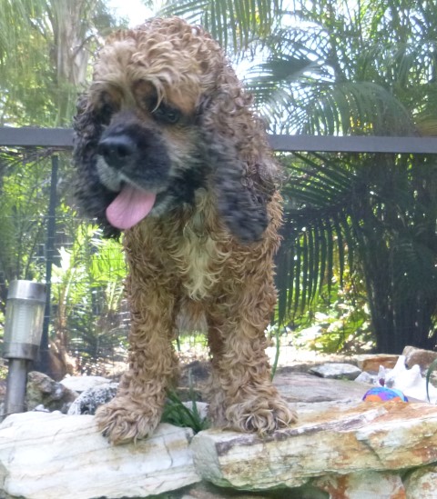 Taz was one of our original studs. He was bred thru Penny Lane Cockers in Wisconsin, born 5/19/2012. He is a beautiful sable baby. He weighs about 22 lb. With his wonderful coloring and pedigree which includes silver and chocolate, he produced pups in many colors! Taz retired at 5 years old in 2017.