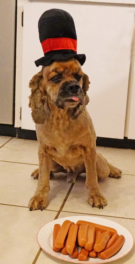 Taz loves hot dogs and Santa – 6 years old and retired now!