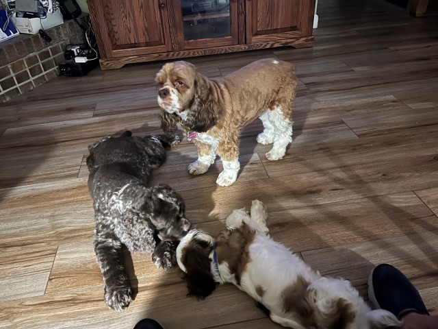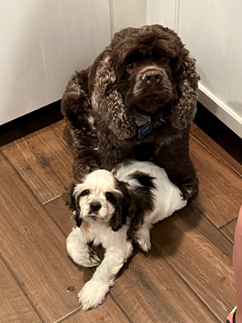 Chip was born March 25, 2019 and joined us in May 2019, His breeder is Caitlyn from T5 Kennels in TX. Chip is a very hard to find chocolate roan cocker. Not only is he incredibly beautiful, but his personality is also wonderful! Chip will be a papa in 2020.