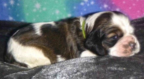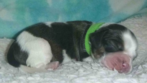 Puppy #4 - male parti sable, not roan green collar |