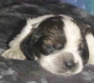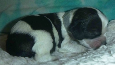Puppy #3 - male parti sable, maybe roan black collar |